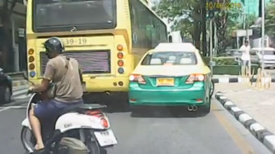 คลิปรถเมล์สาย 539 เบียดแท็กซี่บนถนนราชวิถี แทบกระเด็น