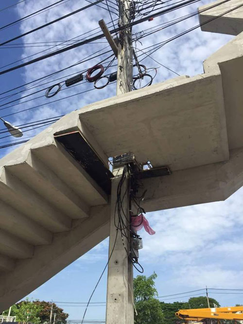 เมื่อวันที่ 10 มิถุนายน 2559 ในโลกโซเชียลเน็ตเวิร์กต่างมีการแชร์ภาพการก่อสร้างสะพานลอย อย่างไรก็ตามสะพานลอยดังกล่าว เป็นการสร้างคร่อมเสาไฟฟ้า และยังสร้างไม่เสร็จ ซึ่งชาวเน็ตต่างสงสัยกันว่า จะเดินขึ้นไปได้อย่างไร เพื่อที่ไม่ให้เกิดอันตราย